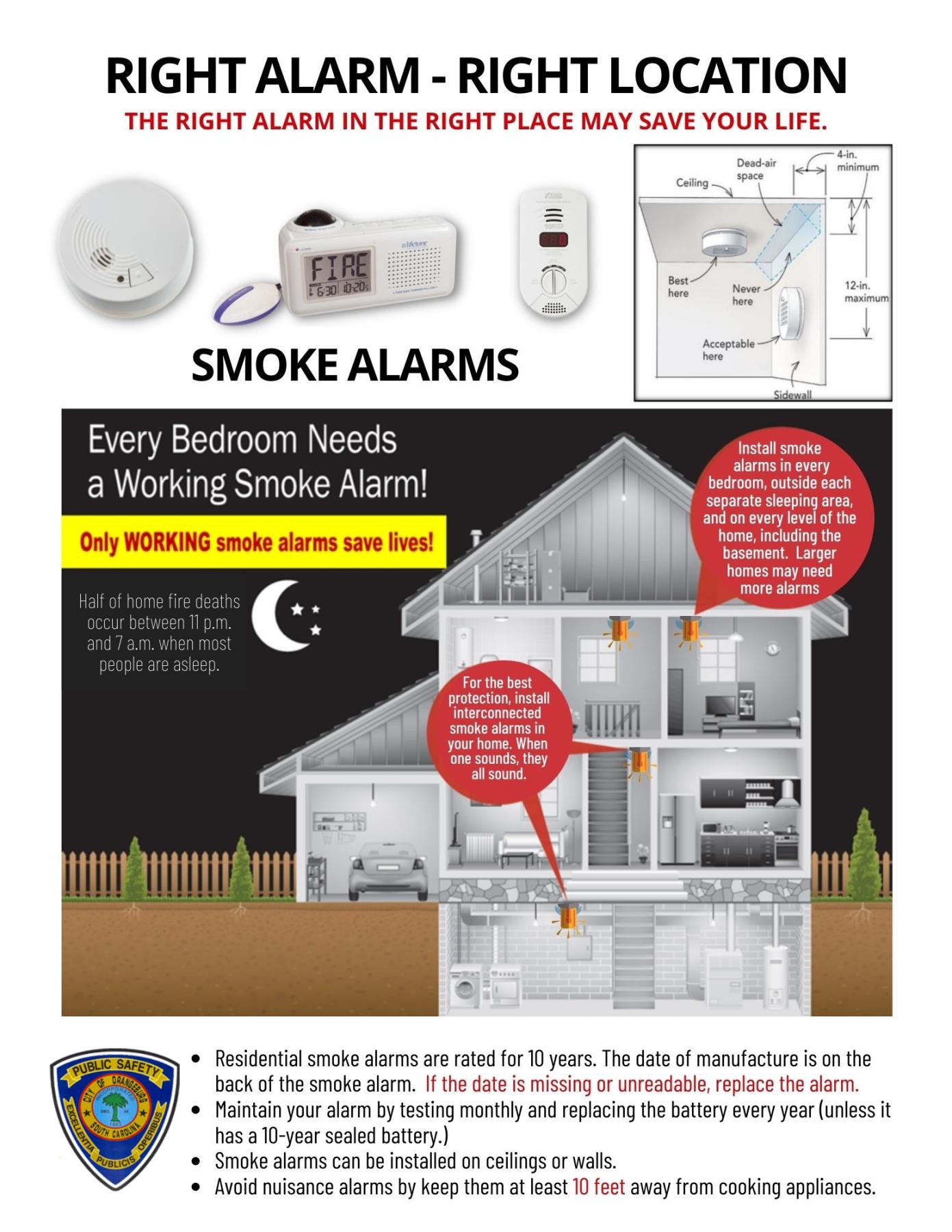- Smoke alarms should be interconnected. When one sounds, they all sound.