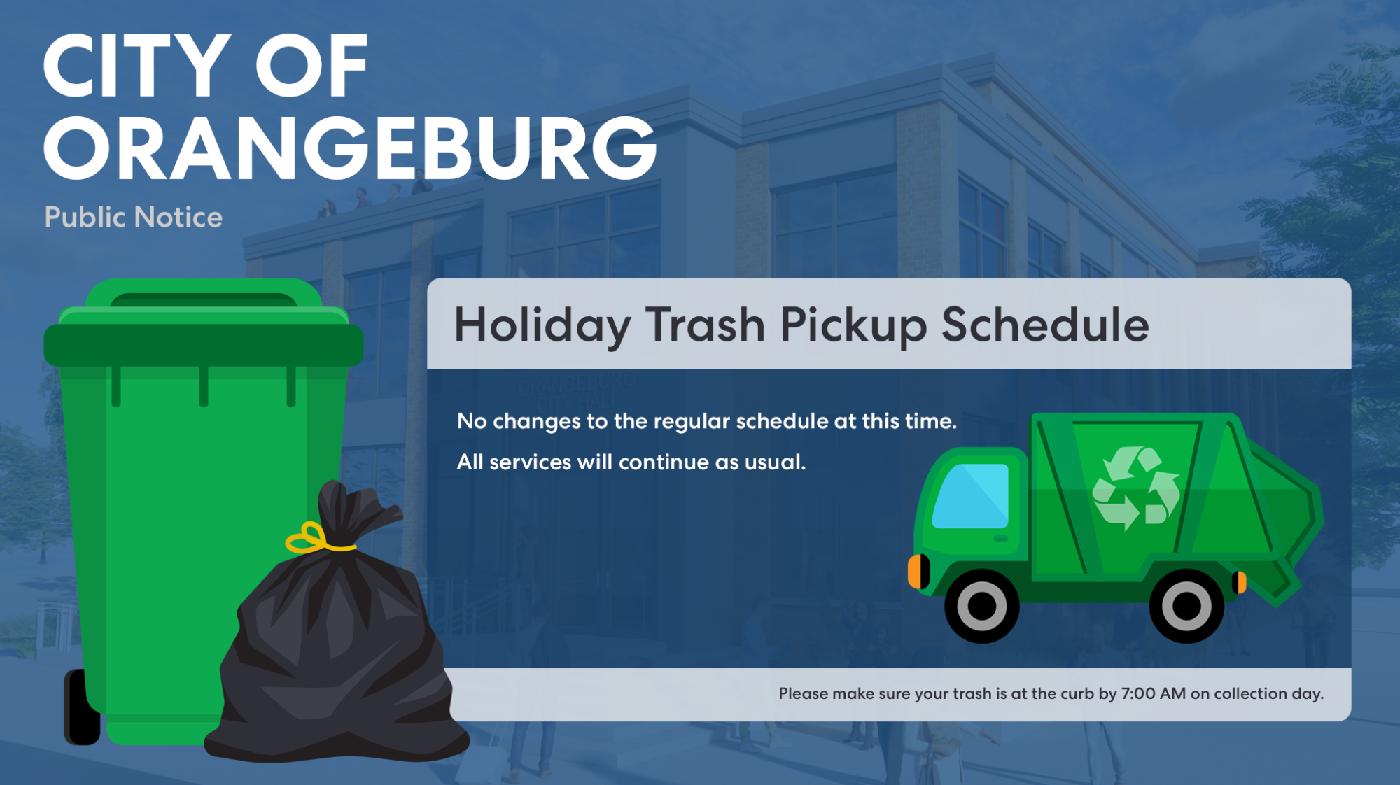 Please put trash on the curb by 7:00 AM on your designated trash collection day.